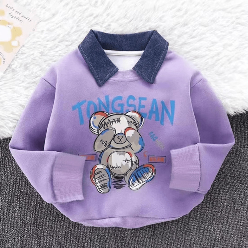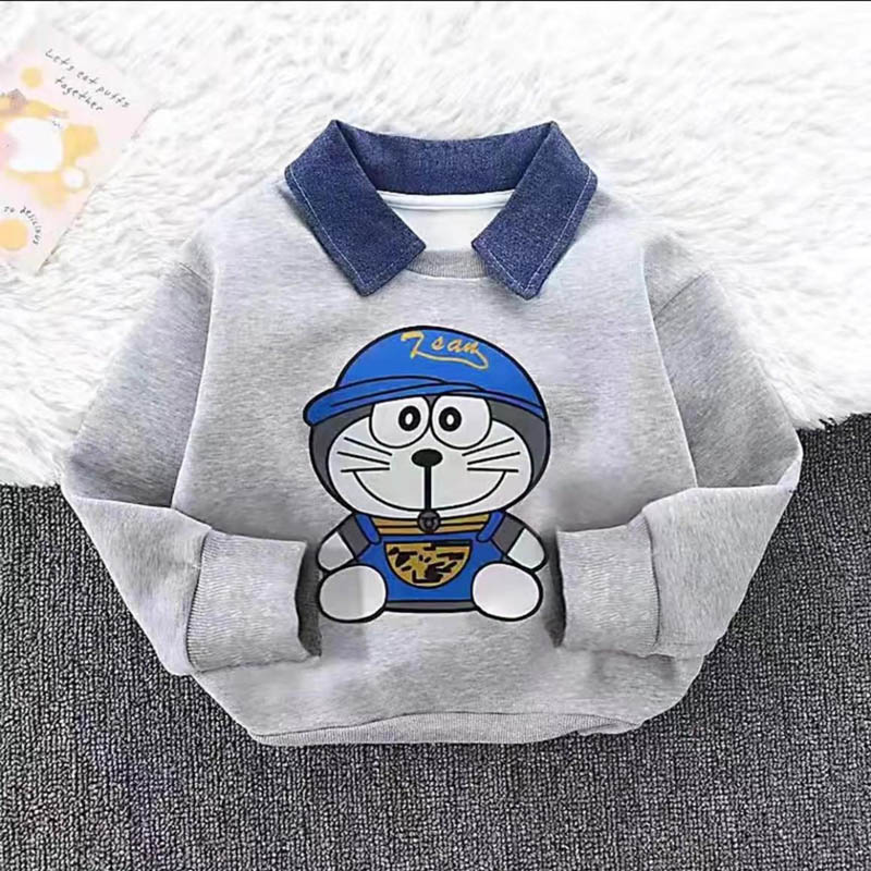 The boy wore a lapel hoodie
