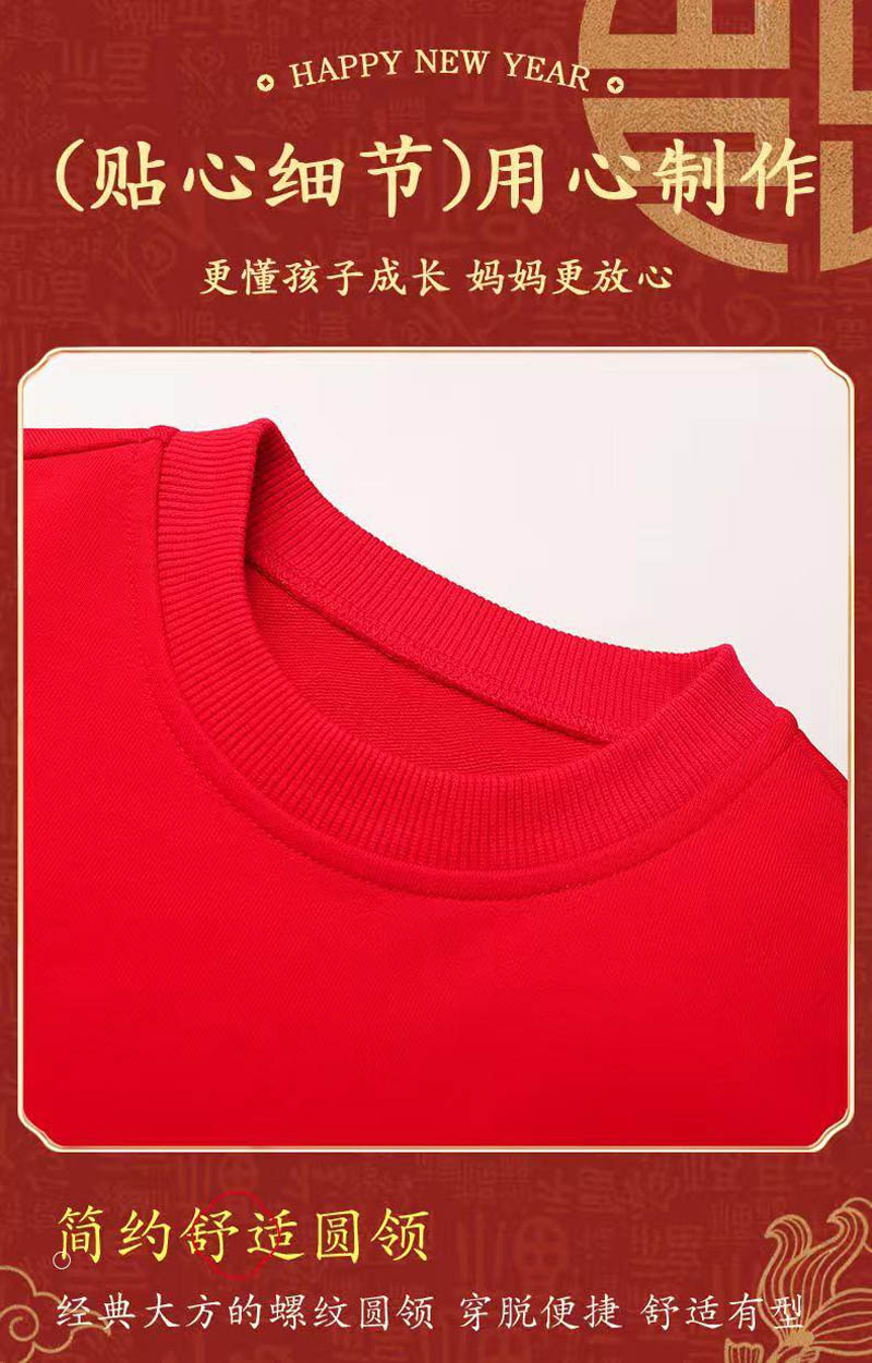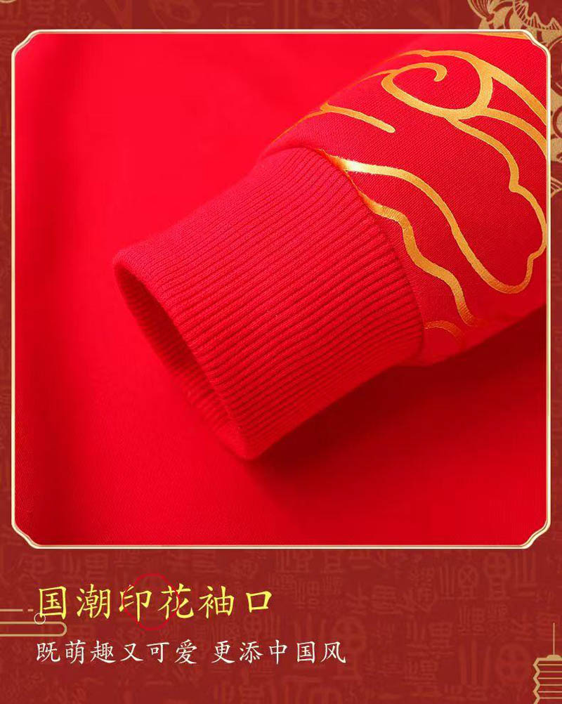 Red fleece New Year's greeting hoodie for children